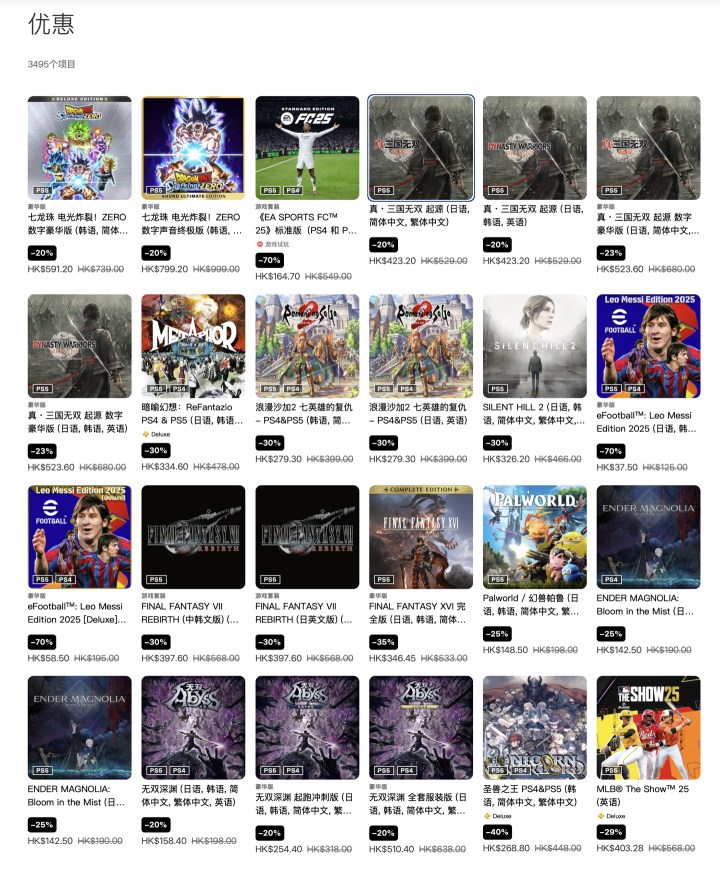 IT之家4月23日消息,索尼PSN商店港服现已开启“春天玩乐祭”促销活动,相应折扣活动将于5月7日结束,其中《暗喻幻想:ReFantazio》、《真三国无双起源》、《寂静岭2:重制版》等作品迎来折扣。